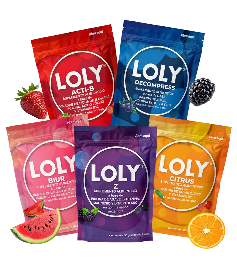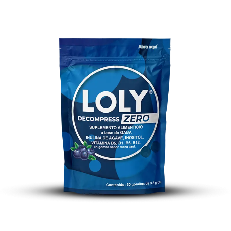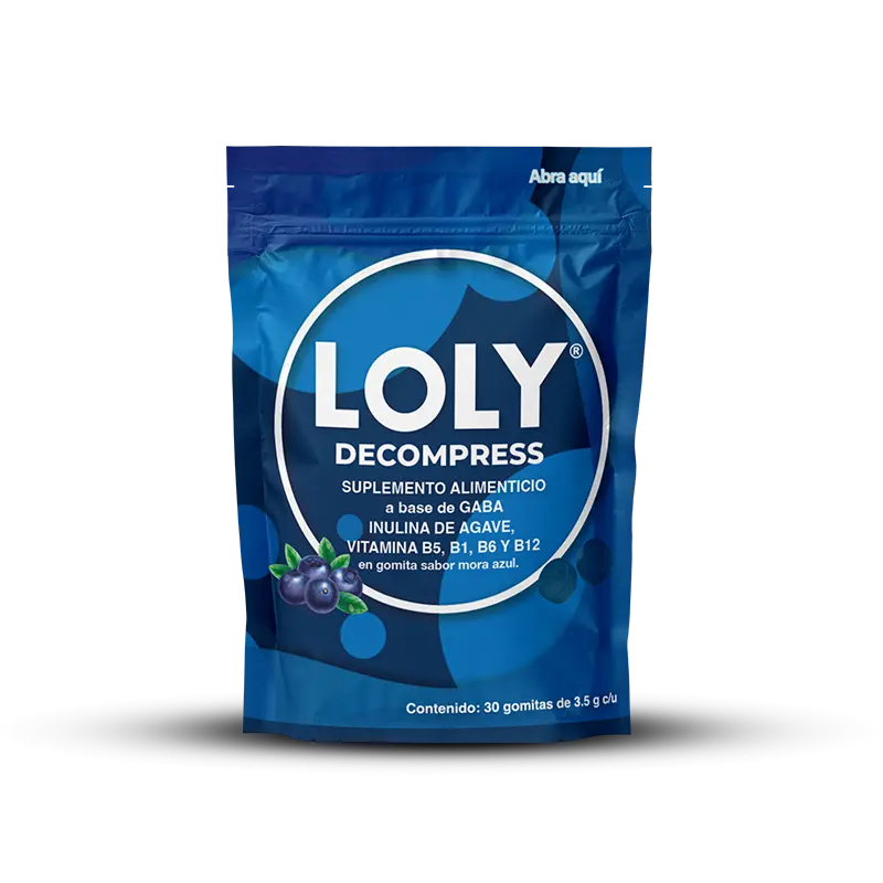 Loly Decompress es una gomita formulada con ingredientes seleccionados del complejo B y GABA, Inulina de agave, Vitaminas B5, B6 y B12. Su combinación ofrece una alternativa práctica para quienes buscan incluir estos componentes en su rutina diaria.